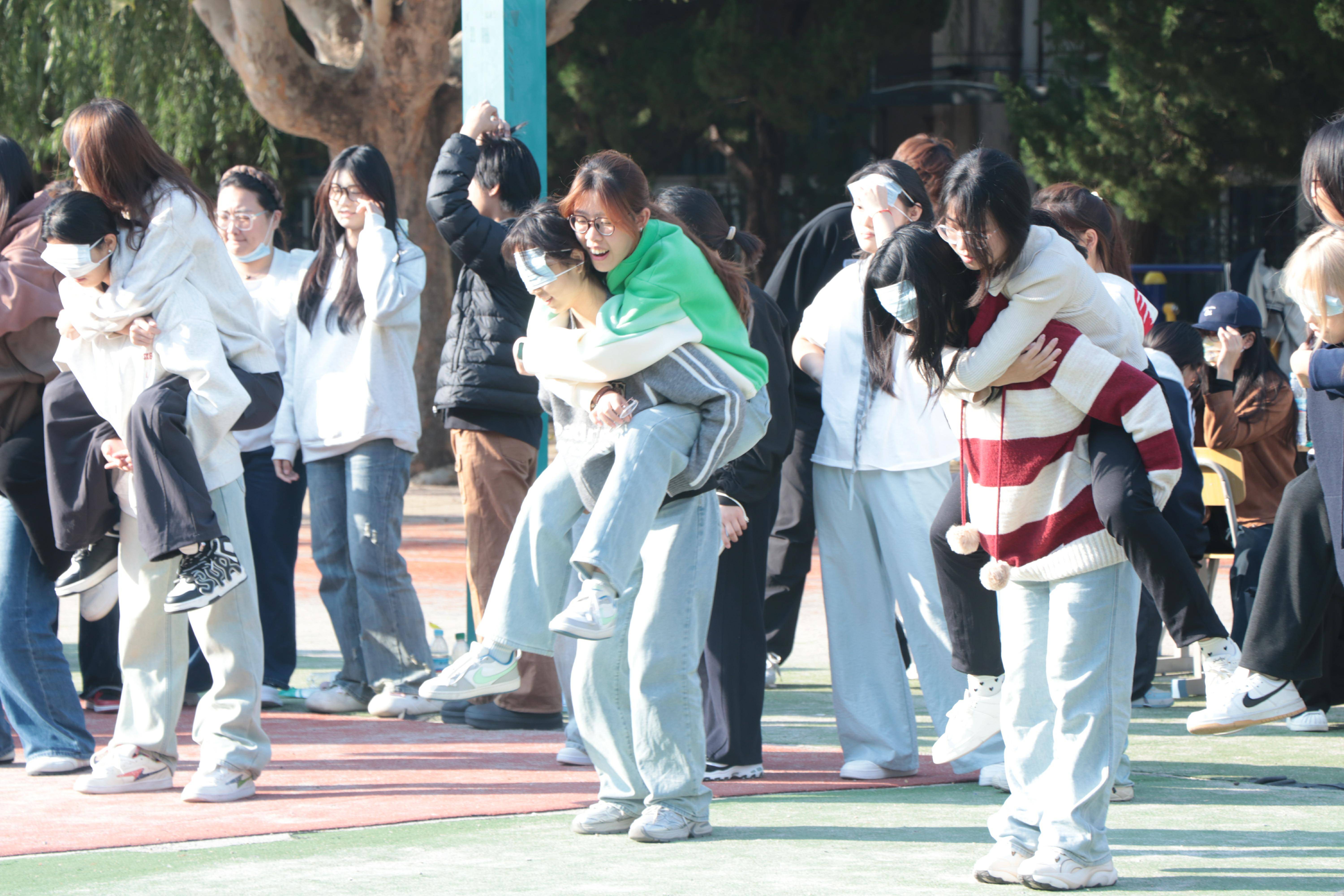 本次体育节准备了九个活动项目,其中夹气球跑和杯水传情这两个是具有挑战性的项目,充分考验了同学们之间的默契,随着一声令下,同学们并肩作战,迈向标志胜利的终点,最为充满激情的项目—抢凳子,这一项目同学们的反应能力,让体育节“燃”起来,校园中充满着同学们的欢声笑语,在接下来的环节中,同学们积极参与,展示独属于青春的那份活力。