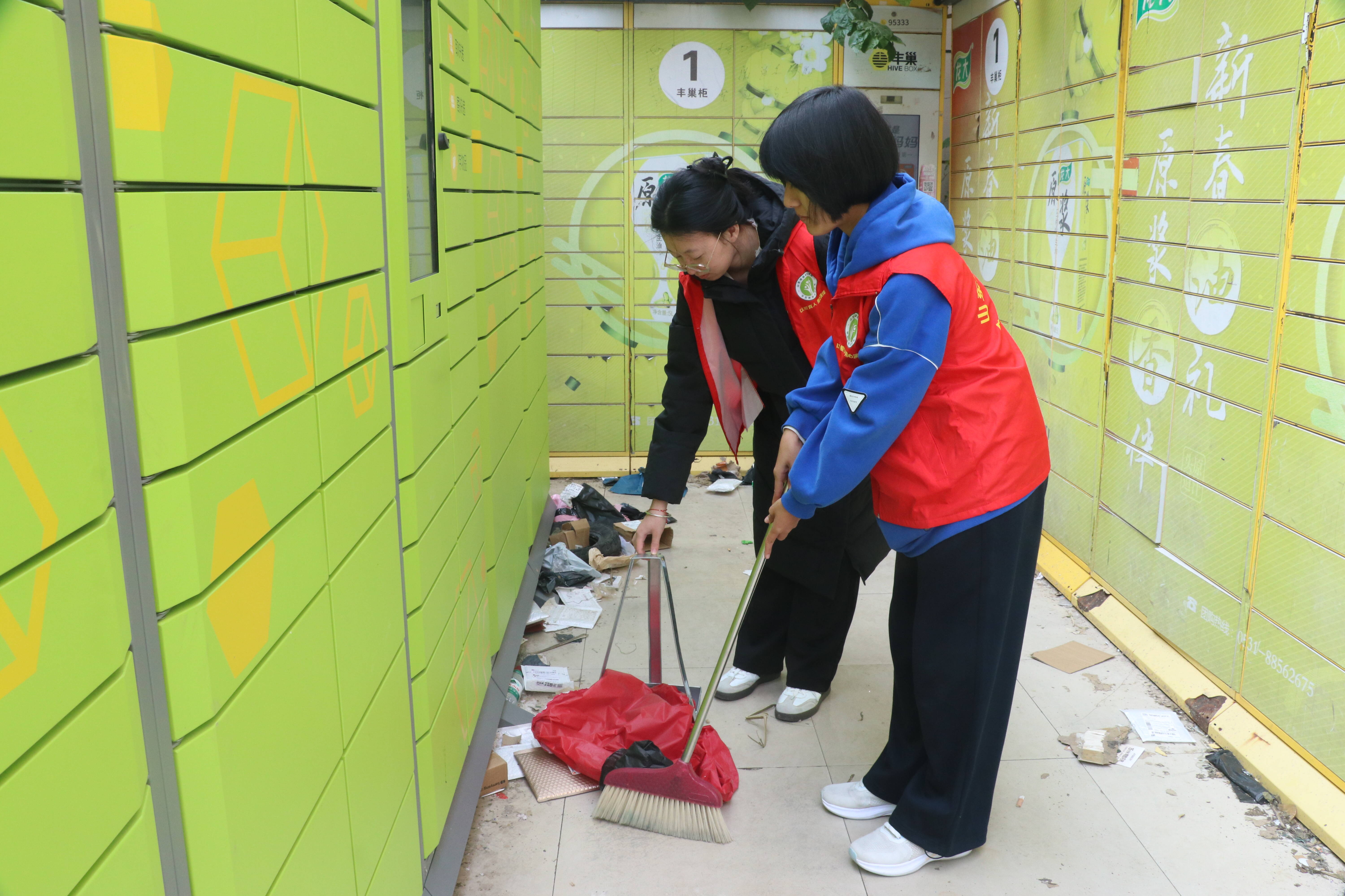 在活动中,同学们分工明确,十分认真的投入劳动实践活动,汗水浇灌了土地,也锻炼了意志。在快递柜服务区域,认真清扫散落的包装废弃物;在操场区域内,细致清扫落叶。同学们通过亲手创造整洁与美好,领悟到了“幸福源于实践”的真谛,责任感与成就感油然而生。