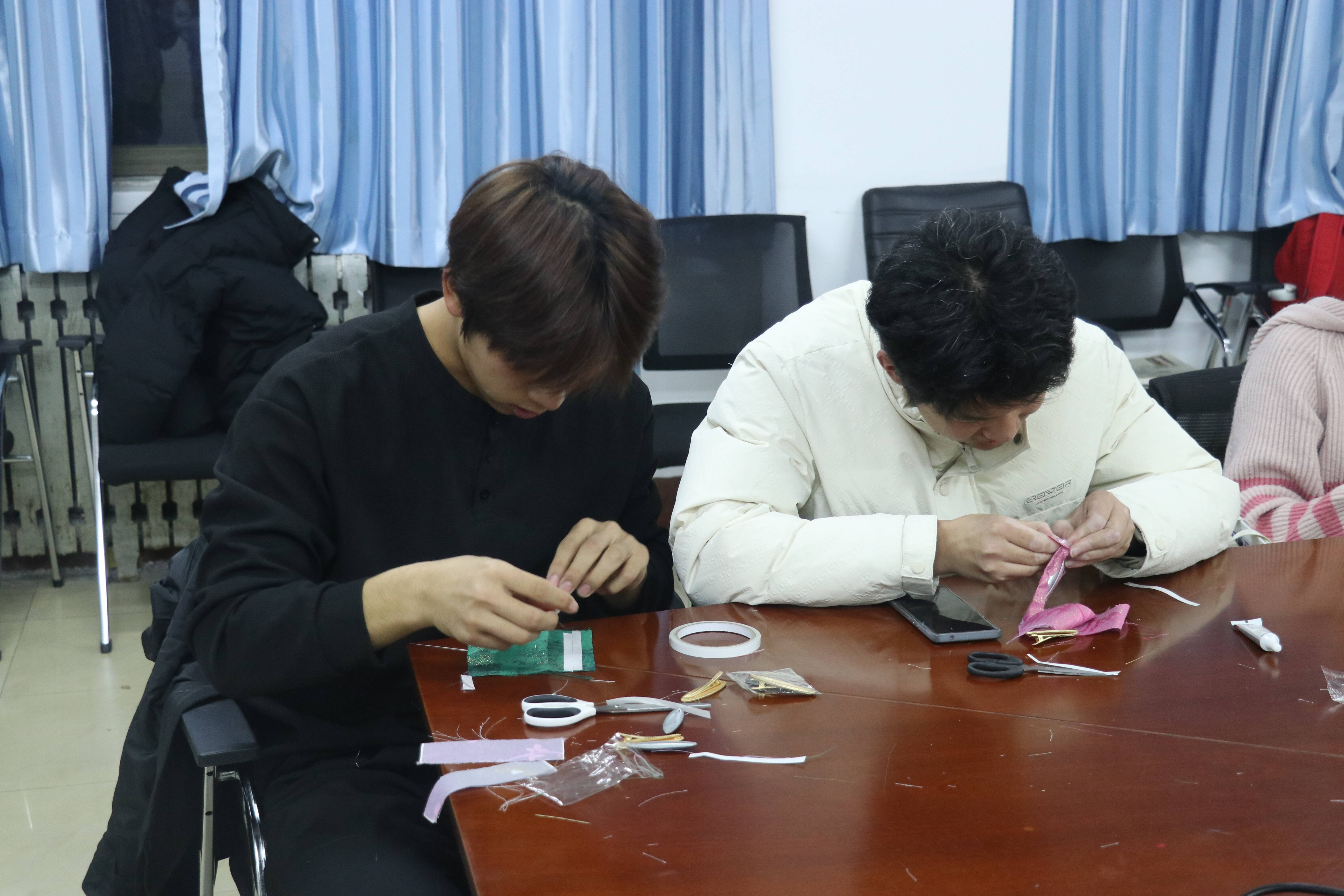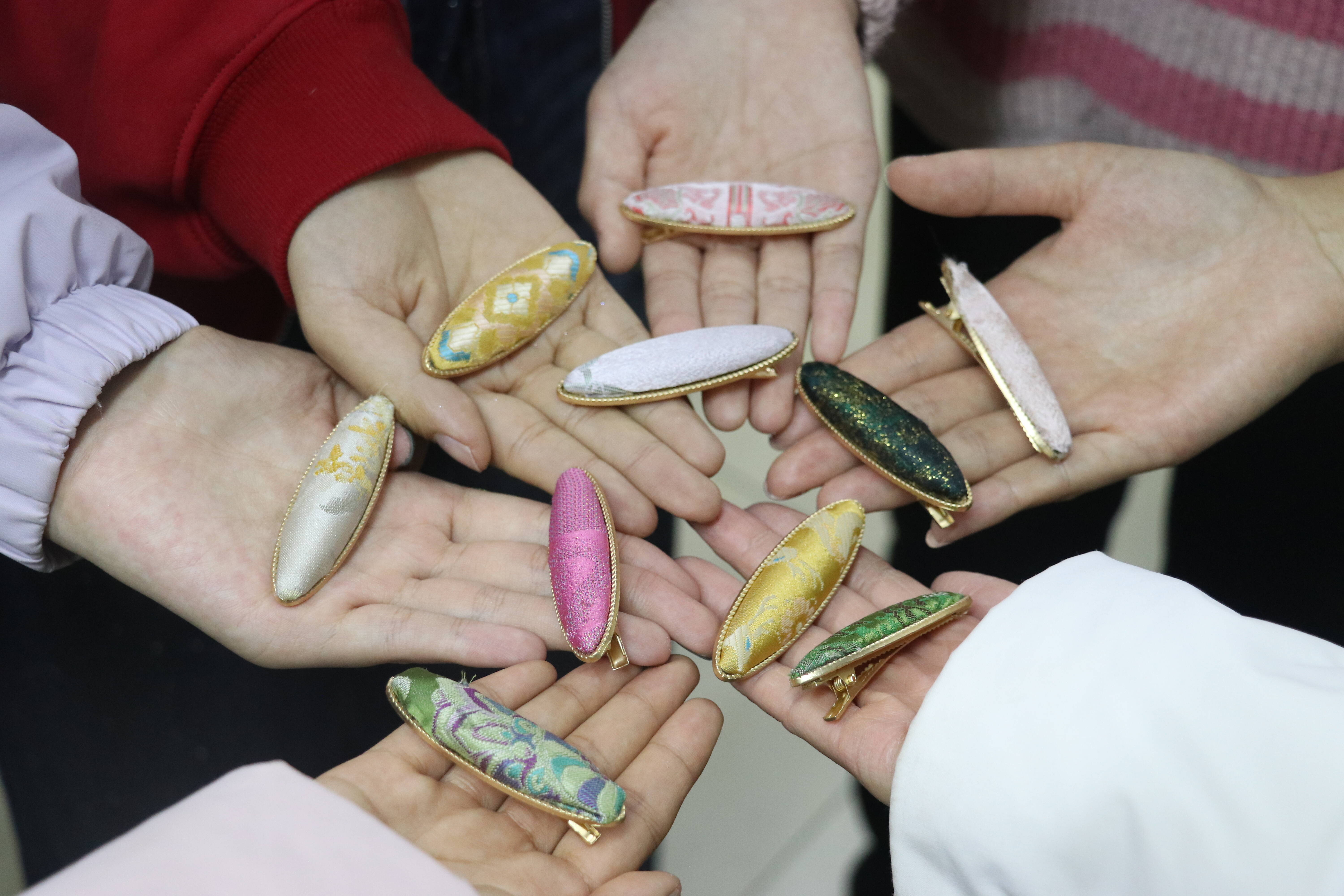 同学们全神贯注于手中的创作,从图案构思、布料剪裁到针线缝合、最终组装,每一步都凝聚着专注与巧思。现场气氛热烈,欢声笑语与指尖技艺交织,一件件独一无二、充满个人风格的非遗发卡在同学们手中诞生。古老的非遗技艺,不再是书本上遥远的概念,而是化为了可触摸、可佩戴、可带走的日常之美。