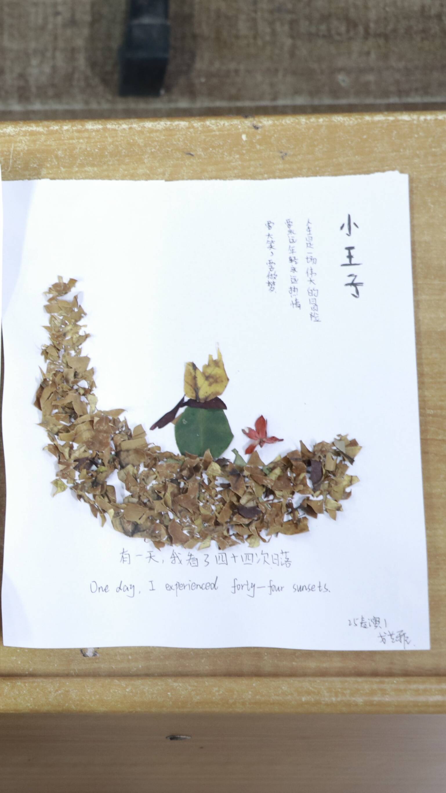 活动中,同学们热情高涨、创意十足,热情满满地投入创作。有的同学将树叶巧妙拼接,组合成各种各样灵活的作品。还有同学将树叶进行裁剪、叠加,制作出富有层次感的抽象作品。原本普通的落叶在同学们的剪刀、胶水与巧思下,变成了一幅幅充满生机的漂亮作品。