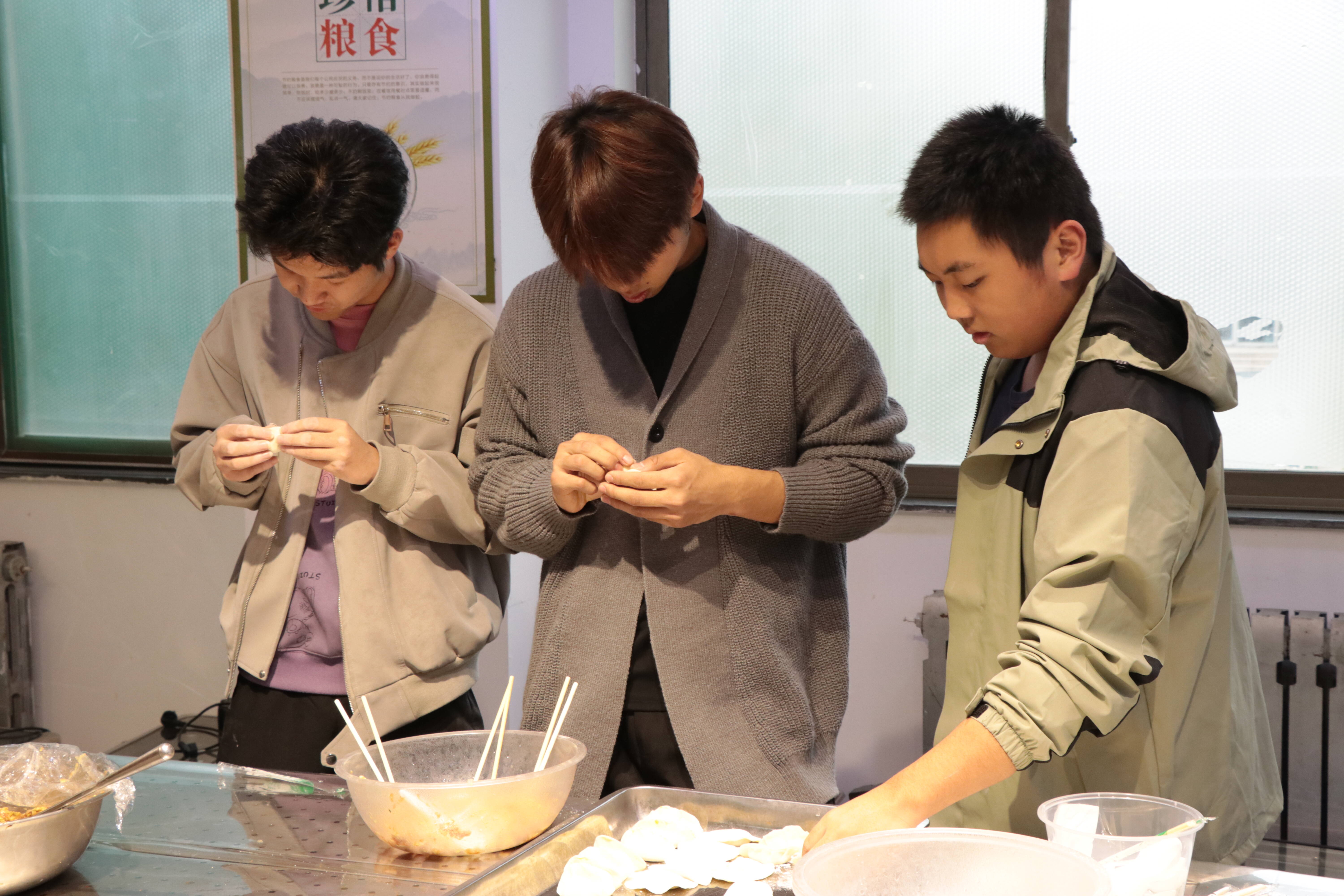 活动现场食材齐全,雪白的饺子皮与鲜香的馅料整齐摆放,吸引学子们踊跃参与。有的同学手法娴熟,元宝饺、月牙饺快速成型;有的同学虽为“新手”,却创意十足,捏出各具特色的“创意饺子”,还主动向身边同学请教技巧。老师们也加入其中,与学生们一同包饺子、话家常,现场欢声笑语不断。随着热气腾腾的饺子出锅,同学们围坐分享劳动成果,在品尝美味的同时,也拉近了彼此距离。