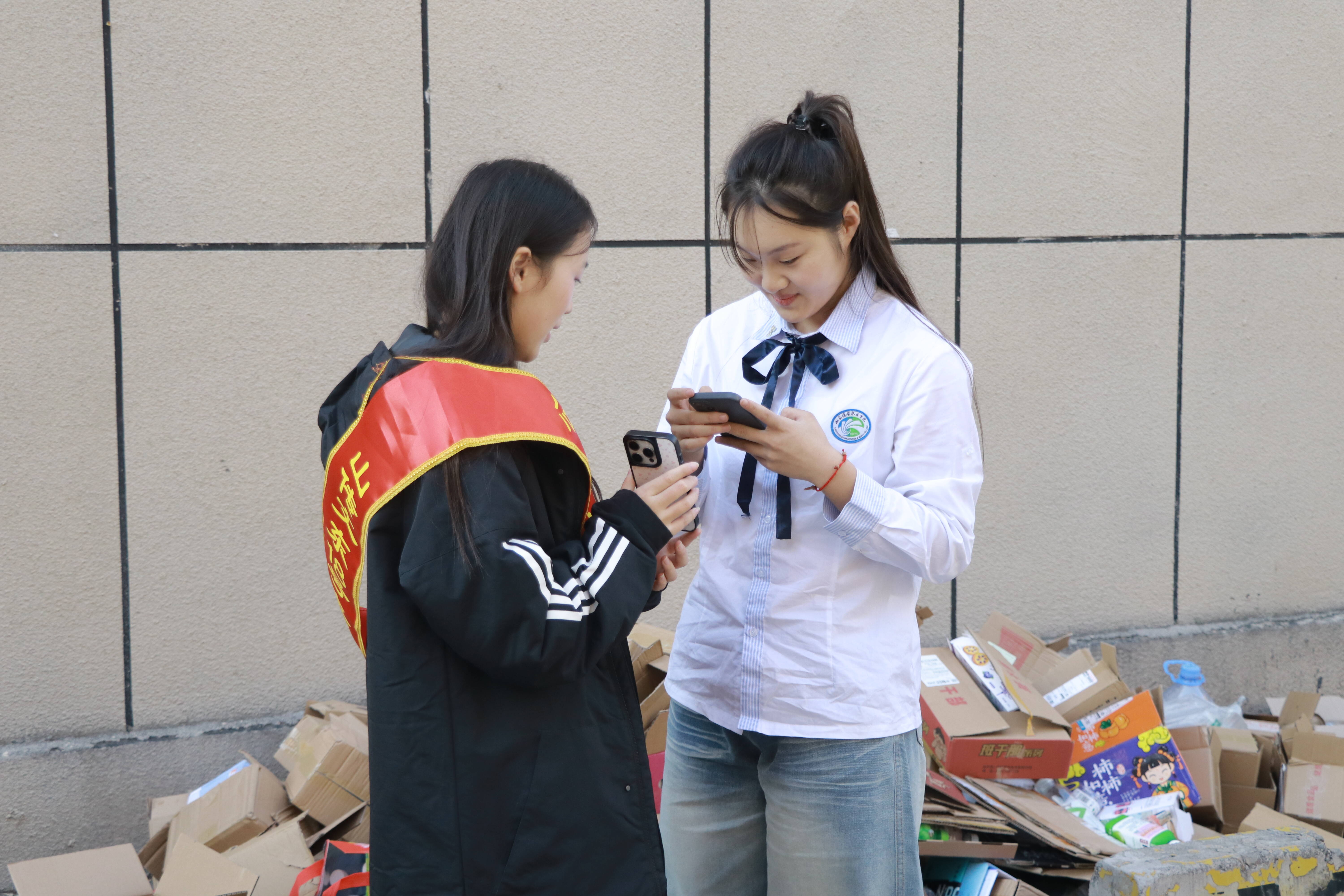 同学们踊跃响应活动号召,怀揣着践行环保理念,纷纷将提前整理妥当的闲置物品送至回收点位。面对志愿者的分类指引,大家主动配合、积极协作,按照塑料瓶、纸箱等旧物类别认真完成分拣与登记工作。