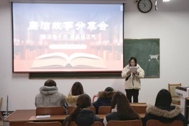 分享会上,同学们热情高涨、踊跃发言。有的讲述周恩来总理“薪金偿付礼品”“拒修会议厅”的公私分明,诠释共产党人的清廉本色;有的吟诵于谦“两袖清风朝天去”的诗句,再现其拒贿守节的刚正不阿;有的细数包拯“六十大寿拒收寿礼”“铁面无私惩贪腐”的事迹,彰显清官廉吏的浩然正气;还有的分享甘祖昌将军解甲归田、扎根农村的奉献坚守,王传喜带领村民致富却坚守底线的责任担当,更有同学结合当代青年廉洁从业的案例,展现新时代青年的清廉追求。一个个动人故事,让现场听众深受触动。