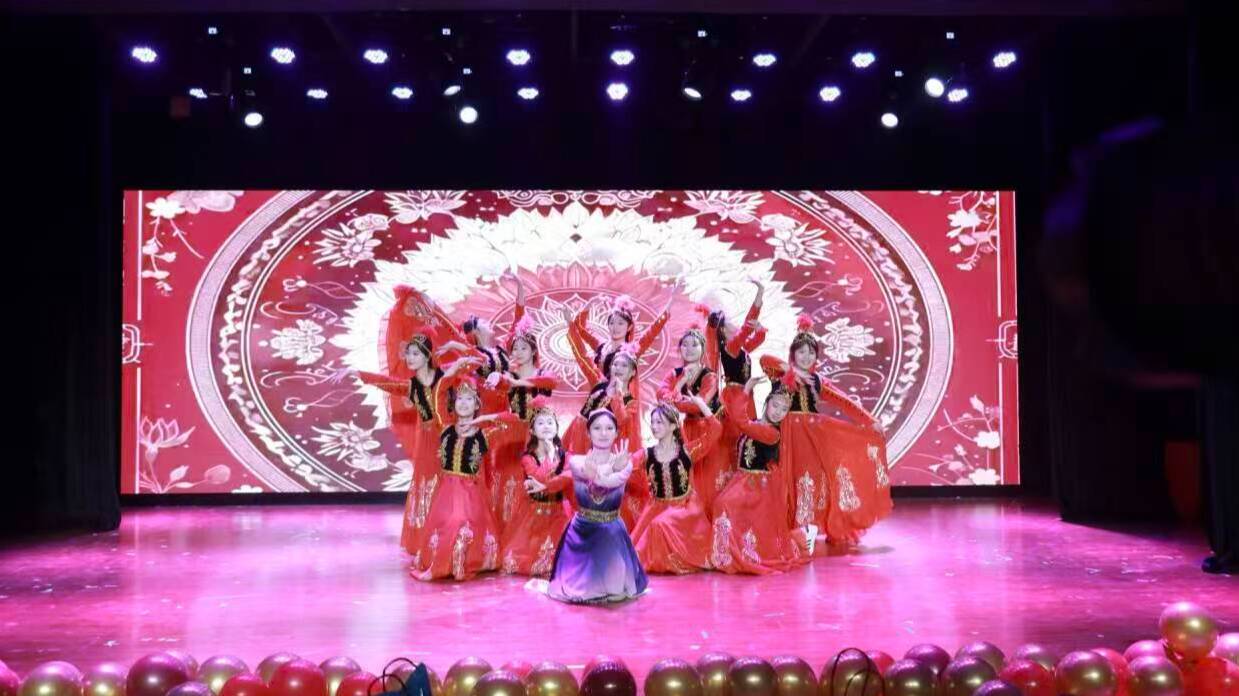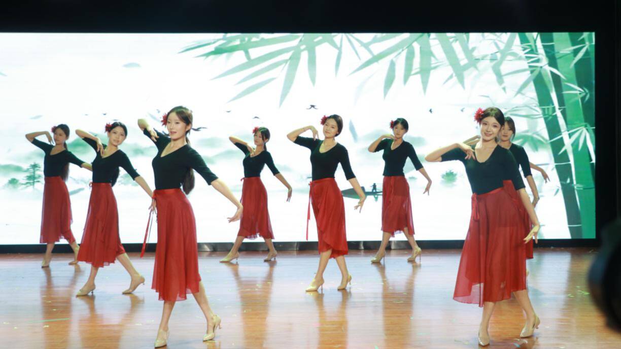 欢快的舞蹈《张灯结彩》为晚会拉开序幕,舞者灵动步伐与灿烂笑容瞬间点燃现场氛围;歌舞《相亲相爱》接续登场,温馨旋律搭配柔美表演,传递出团聚暖意与同窗真挚情谊。