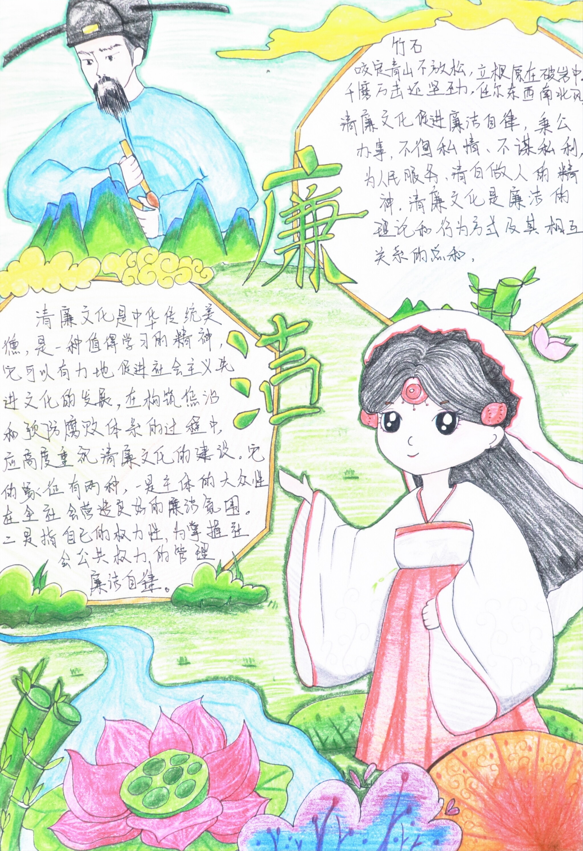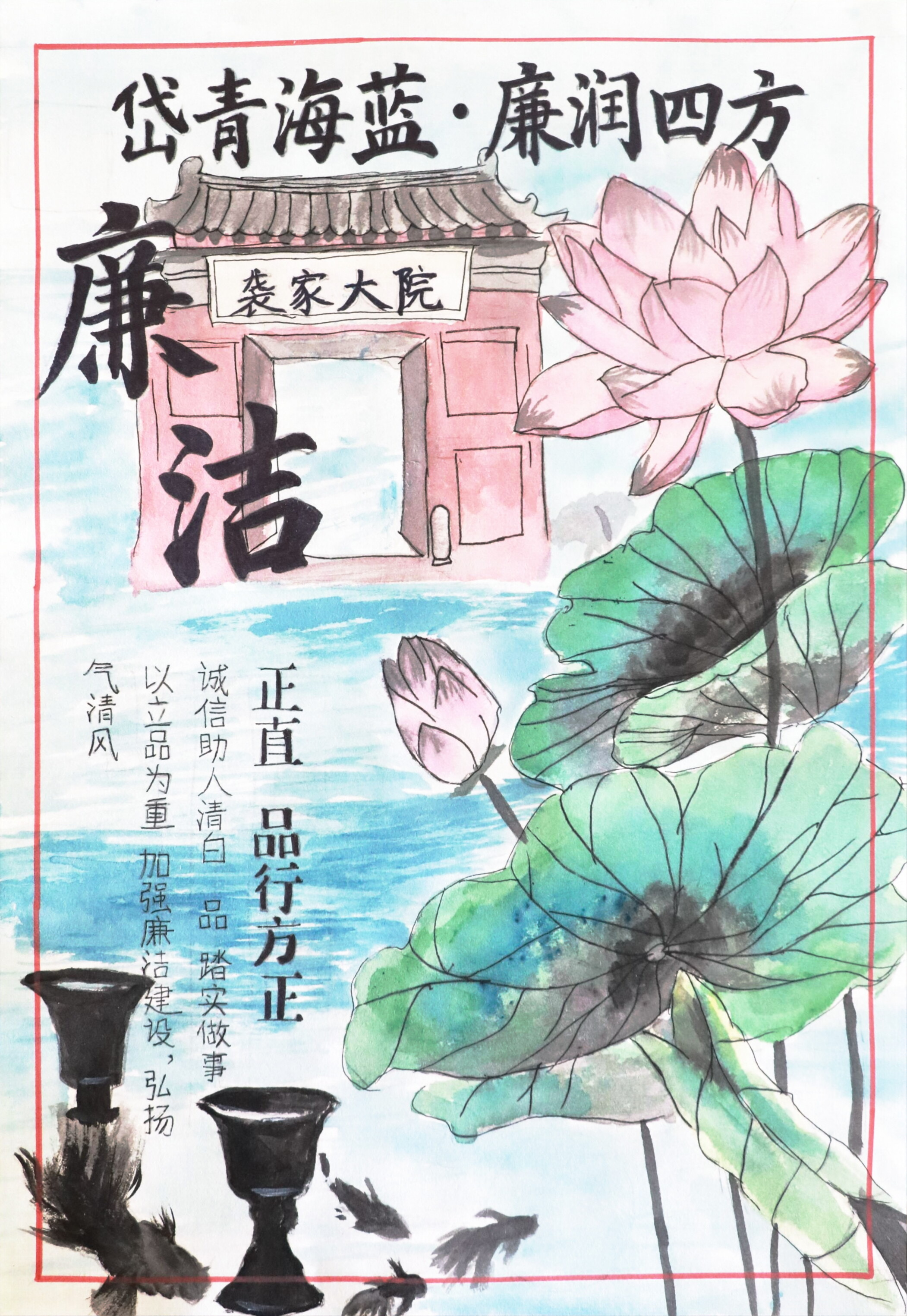 活动中,同学们紧扣廉洁主题,创作出一批主题鲜明、风格多样的优秀作品。水墨清莲喻示高洁品格,线描“清廉”彰显文化底蕴,卡通插画传递廉洁理念,每一幅作品都凝聚着学子们对廉洁的深刻理解与坚守。本次活动坚持以赛促学、以展育人,参赛作品紧扣主题,既有古代清官的浩然正气,也有新时代廉洁榜样的动人事迹。同学们在潜移默化中接受了廉洁文化的熏陶,自觉筑牢拒腐防变的思想防线。